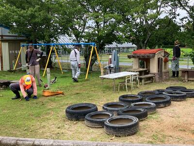 7月18日(金)、朝早くから、幼小応援する会の方の協力のもと、園庭や駐車場の整備をしていただきました。毎回子ども達のために力を貸していただき、ありがとうございます。
