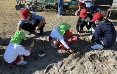 「5年生と一緒にリレーができて嬉しかった!」「5年生が早かったけど、氷鬼でタッチできたよ!」「一緒に砂遊びができて嬉しかった!」と楽しかったことが感じられる声がたくさん聞かれました。