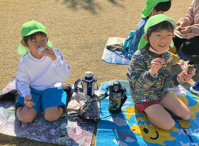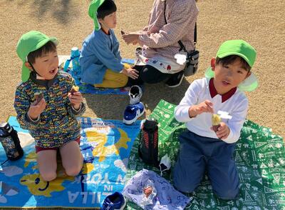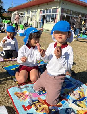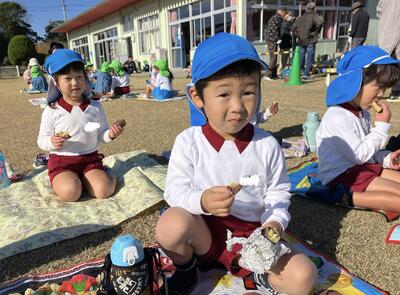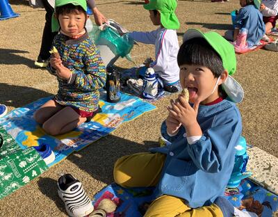 前日に全学年でサツマイモを洗い、年長児がアルミホイルでまき準備万端!当日は、子ども達の登園前から幼小応援する会の方が準備をしてくれ、焼きたてホクホクの焼き芋をいただくことができました!「美味しい!」「おかわりください!」「おいしくて、3つも食べちゃった!」「やわらかいね!」と、笑顔いっぱいお腹もいっぱいの子ども達でした。