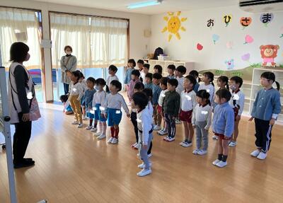 始業式では、新年の挨拶を行い、丙午や七草粥についての話、いろいろなことにチャレンジできる年にしよう!という話を聞きました。職員による正月遊びや挑戦遊びの紹介を行った際には、どの子も興味をもち見ていました。「1月は行く」「2月は逃げる」「3月は去る」と言われるように、三学期はあっという間に過ぎてしまいます。進級や進学に向けて、一人一人が心も体もたくましく成長していけるよう、職員一同努めていきたいと思います。よろしくお願いします。