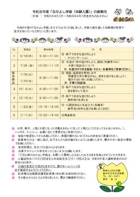 令和8年度 なかよし学級(未就園児体験入園)のお知らせです。皆さんの参加をお待ちしています。
